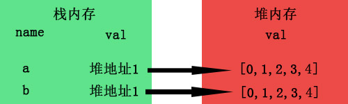 当你b=a复制时,栈内存会新开辟一个内存,例如这样: