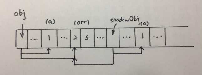 b.引用数据类型--名存在栈内存中,值存在于堆内存中,但是栈内存会提供一个引用的地址指向堆内存中的值,我们以上面浅拷贝的例子画个图:
