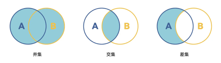 首先我们需要了解一下什么交集、并集、差集。