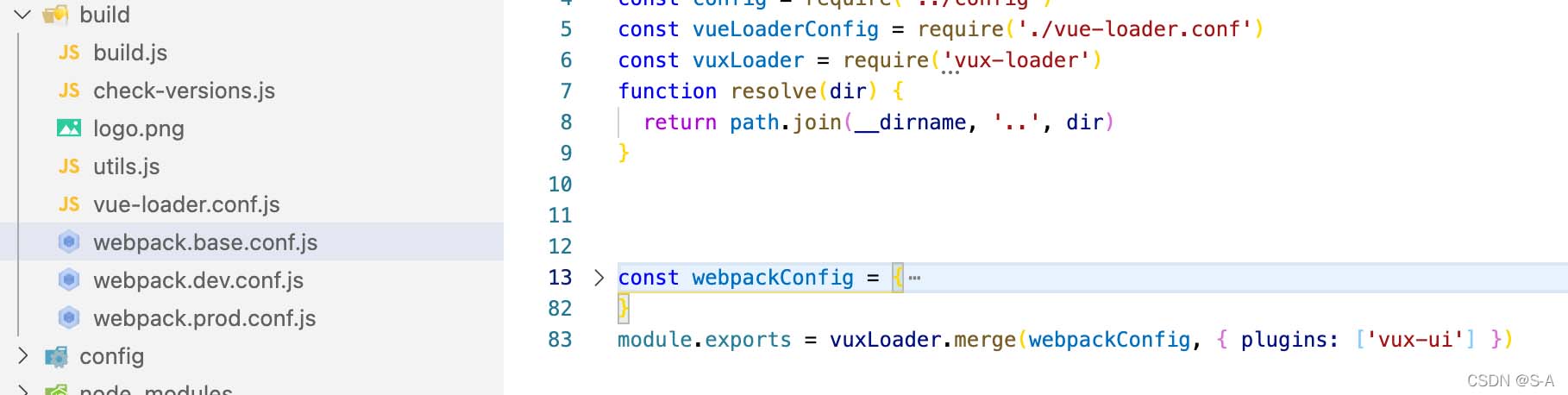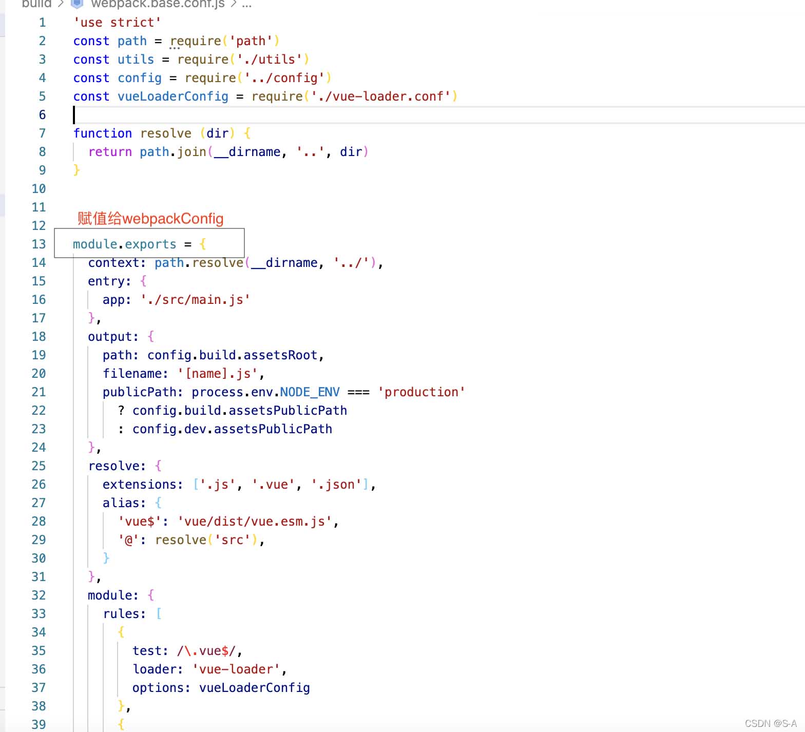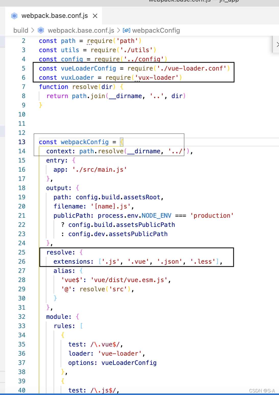 3.build/webpack.base.conf.js里参照如下代码进行配置: