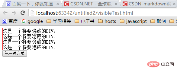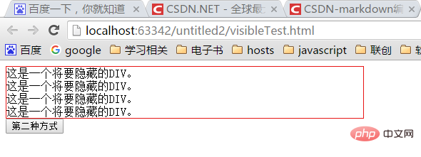 2、使用style对象的visibility属性,值为“hidden”可隐藏div元素,值为“visible”可显示元素。