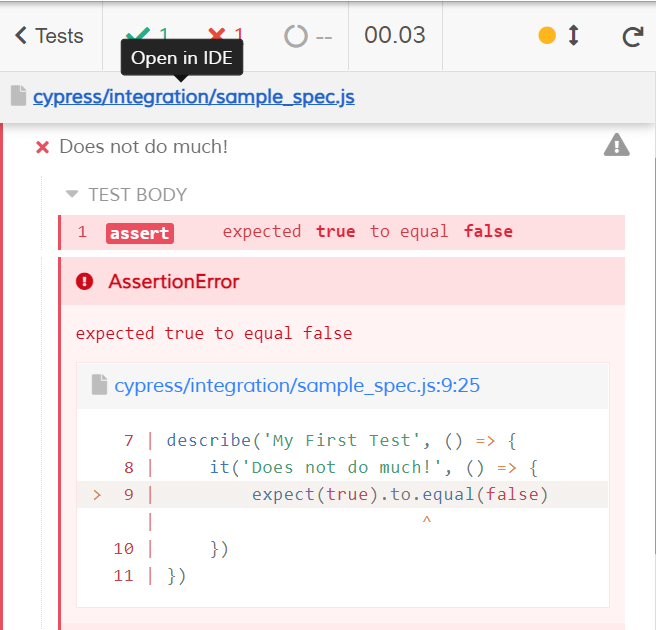})保存文件后,切换到cypress运行器,可以看到如下变化: