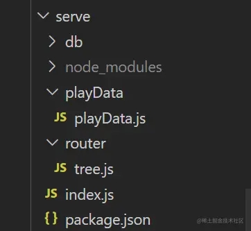db是数据源,因为没有引入sql数据库,所以这里使用node简单对json数据文件进行读写操作满足简单的增删改查操作,palyData用于操作数据json