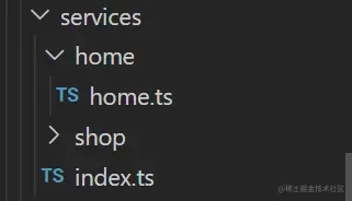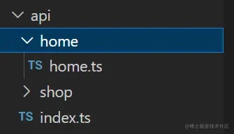 这一层级是为了封装api请求,在这里我是根据页面模块功能进行划分,如home页面所有请求就在home文件下,shop所有请求都在shop文件夹下,在index.ts中进行引入,并导出,这么做的好处是我们日常开发中很容易根据页面模块去找到对应的请求,协同开发中也不容易导致请求接口混乱