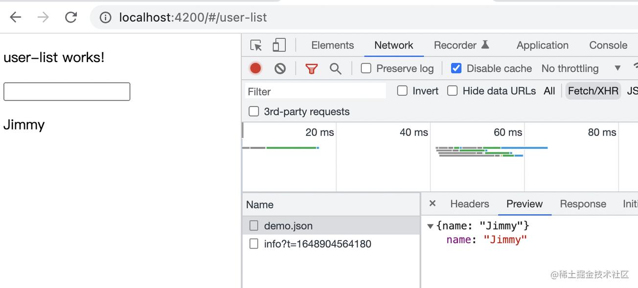 这样浏览器进入路径 http://localhost:4200/user-list 就可以看到效果了。