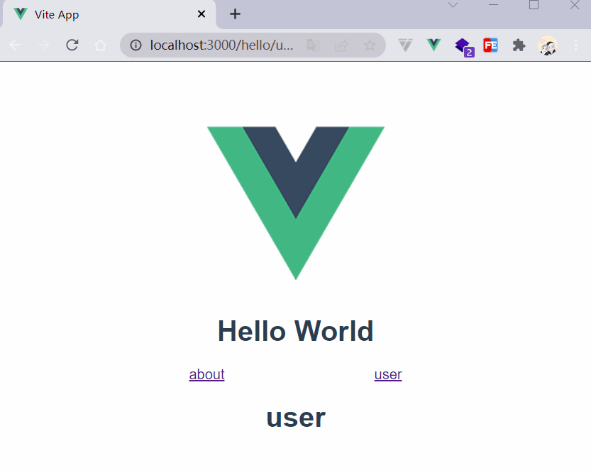 VueRouter允许我们动态的去设置路由匹配规则,例如我们现在有一个User组件,组件的内容会根据不同的ID展示不同的内容,设置方法只需要通过:参数名的形式去设置即可。