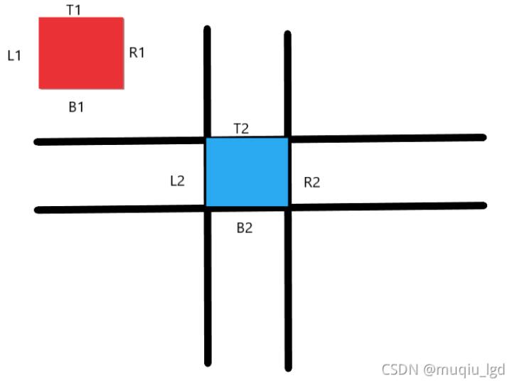 分别命名两个物体的四边为:L1,T1,R1,B1和L2,T2,R2,B2