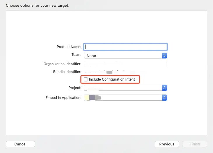 例如前缀是 XY 则需要修改为 XYConfigurationIntent.self