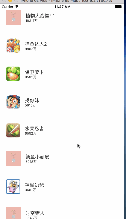 @interface ViewController () //所有数据 @property (nonatomic,strong)NSArray *apps; //内存缓存图片 @property (nonatomic,strong)NSMutableDictionary *imgCache; /**所有操作*/ @property (nonatomic,strong)NSMutableDictionary *operations; /**队列对象*/ @property (nonatomic,strong) NSOperationQueue *queue; @end