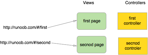 通常我们的URL形式为 http://runoob.com/first/page,但在单页Web应用中 AngularJS 通过 # 标记 实现,例如: