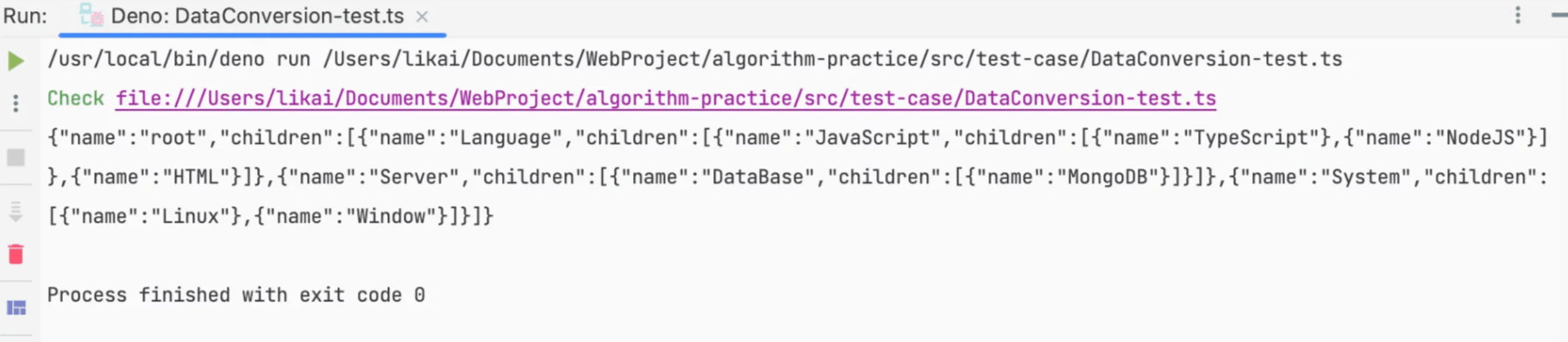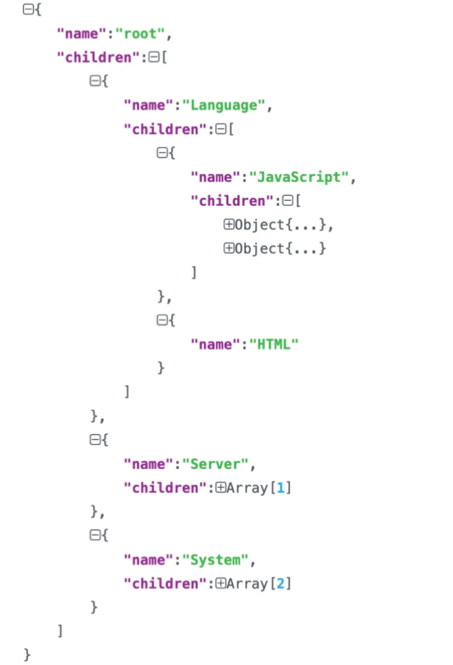 `;将其转换为有层次结构的json数据后为: