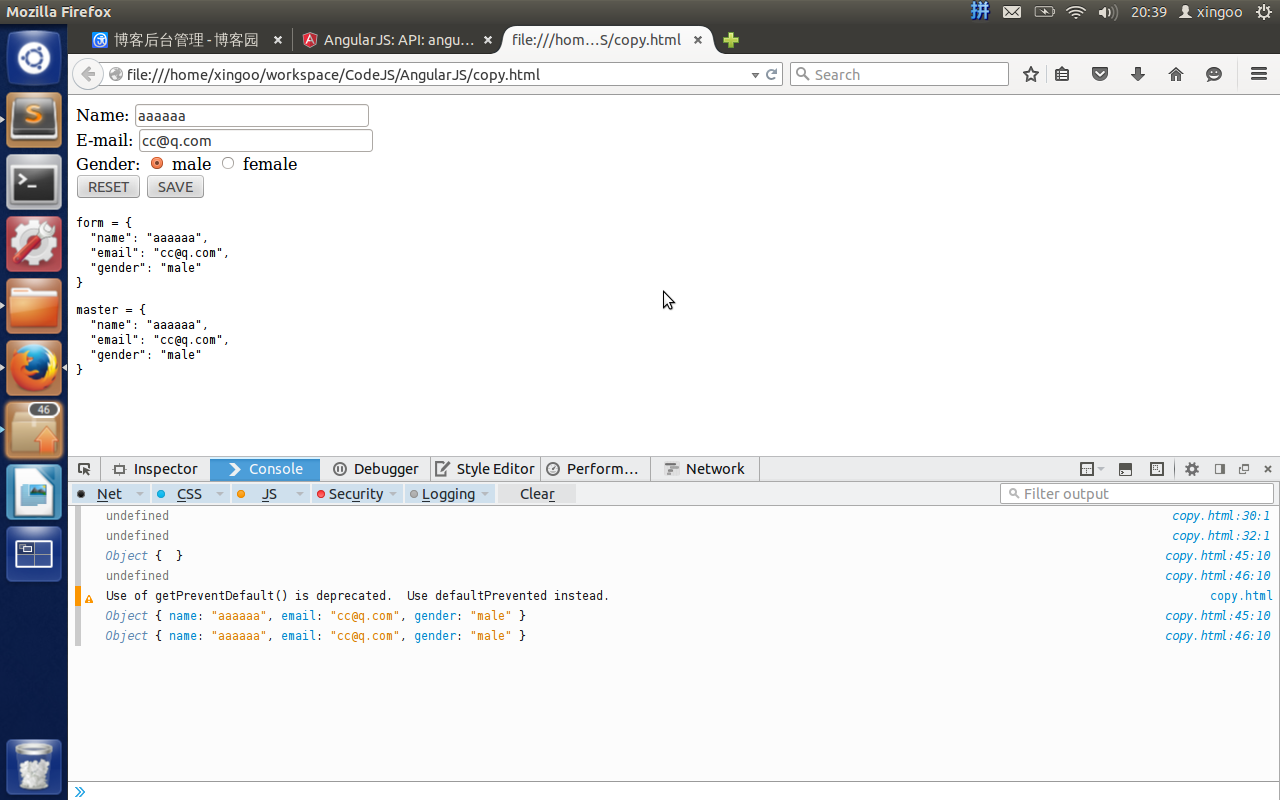 angular提供了一个可以复制对象的api——copy(source,destination),它会对source对象执行深拷贝。