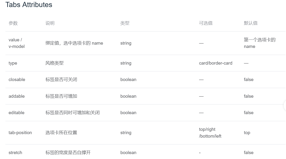 tabs的属性