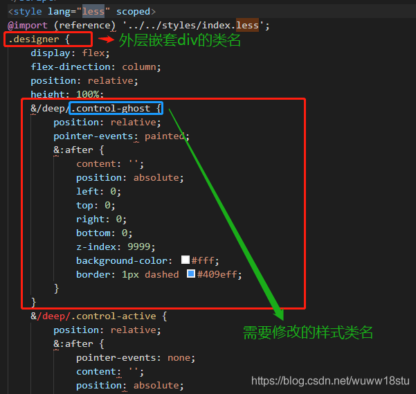 在引用的组件外面套一层div,在div中定义一个class,例如class=“desinger”