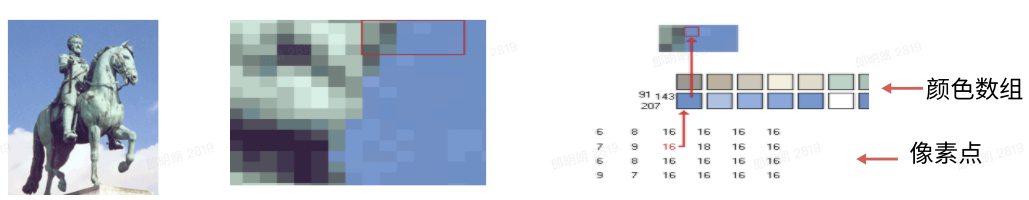 于是我们尝试了 RGB with palette 编码方式[2]。RGB with palette 编码的得到的字节流首先维护了一个颜色数组。颜色数组每个成员用 RGBA 四个分量维护一个颜色。图像中的每个像素点则存储颜色数组的下标代表该点的颜色。颜色数组维护的颜色种类和数量由图片决定,同时可以人为的限制颜色数组维护颜色的种类的上限,默认为最大值 256 种。这种编码方式正如它的名字:palette(调色板)。