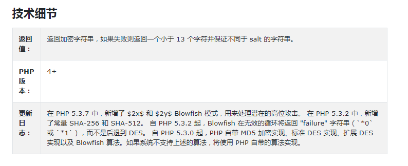 在不同的操作系统上,该函数的行为不同,某些操作系统支持一种以上的算法类型。在安装时,PHP 会检查什么算法可用以及使用什么算法。