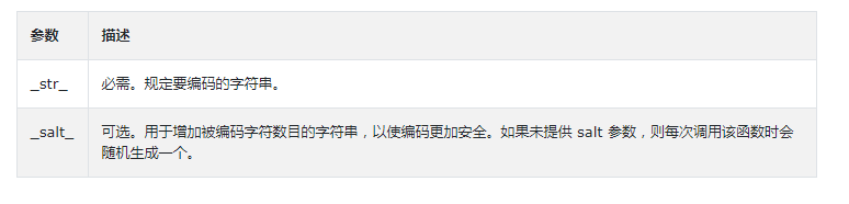 确切的算法依赖于 salt 参数的格式和长度。salt 可以通过增加由一个特定字符串与一个特定的加密方法生成的字符串的数量来使得加密更安全。
