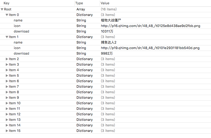 我们一步一步进行解析,先从单线程(主线程)进行多图片下载我们布局上的文字及图片的地址从plist文件中进行读取