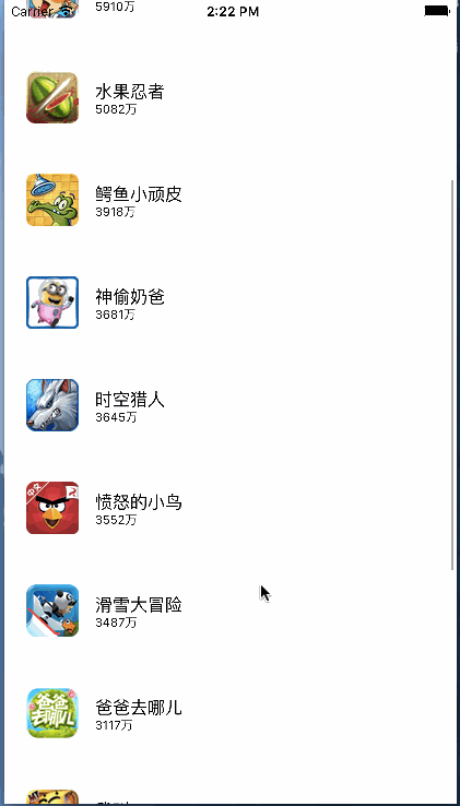 @interface ViewController () //所有数据 @property (nonatomic,strong)NSArray *apps; //内存缓存图片 @property (nonatomic,strong)NSMutableDictionary *imgCache; @end