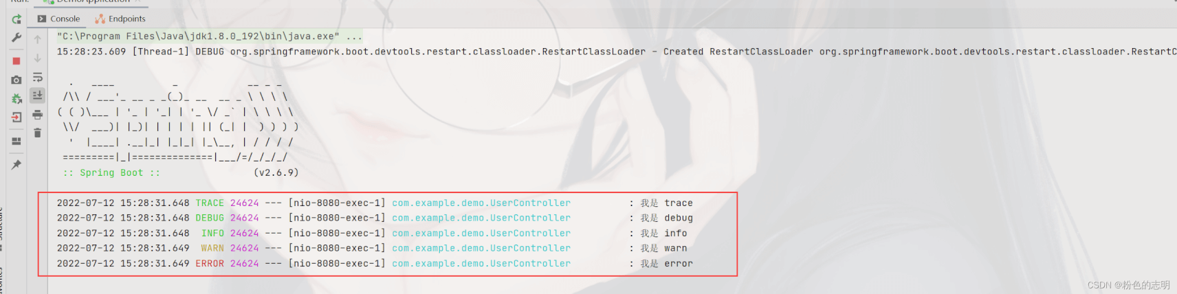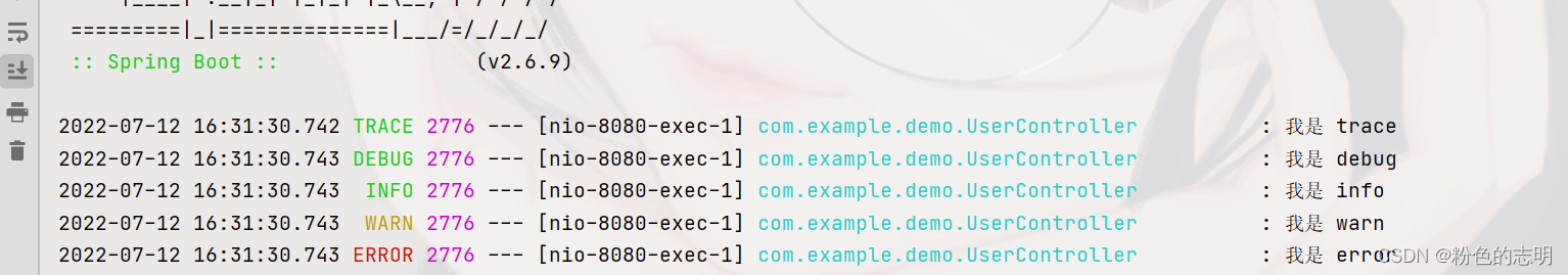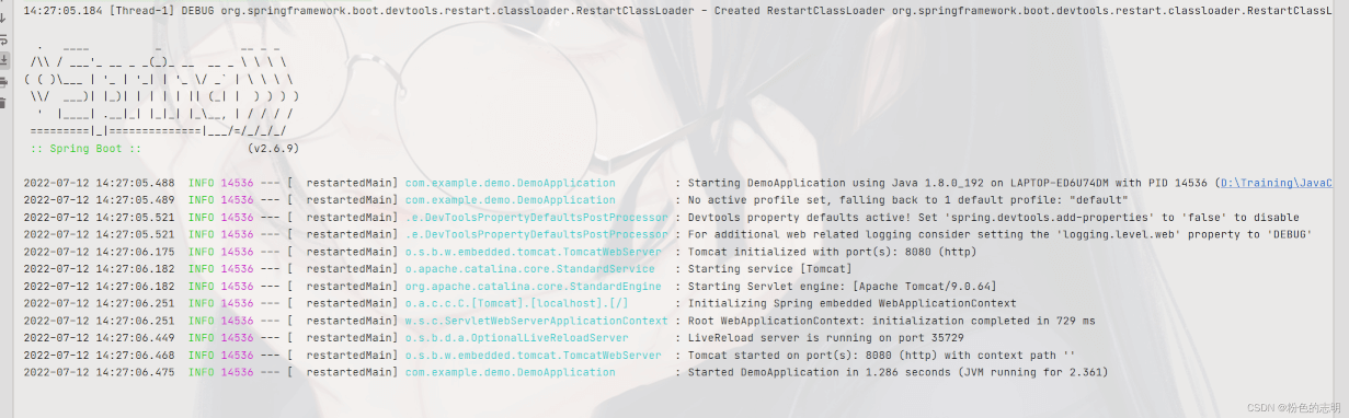 在我们启动 SpringBoot 项目的时候就会输出日志: