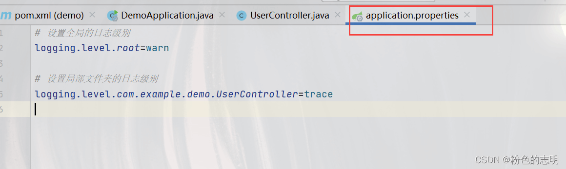 ⽇志级别配置只需要在配置⽂件中设置“logging.level”配置项即可: