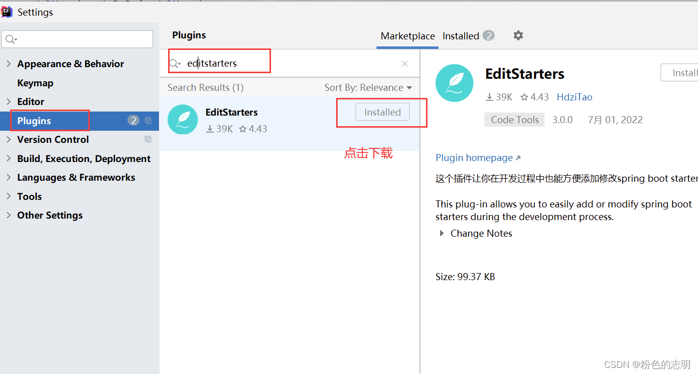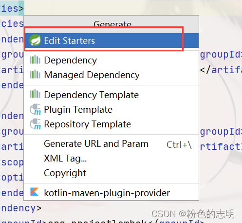 如果你当初没有添加 lombok 又不想重开项目,有这样一种办法,下载插件 EditStarters: