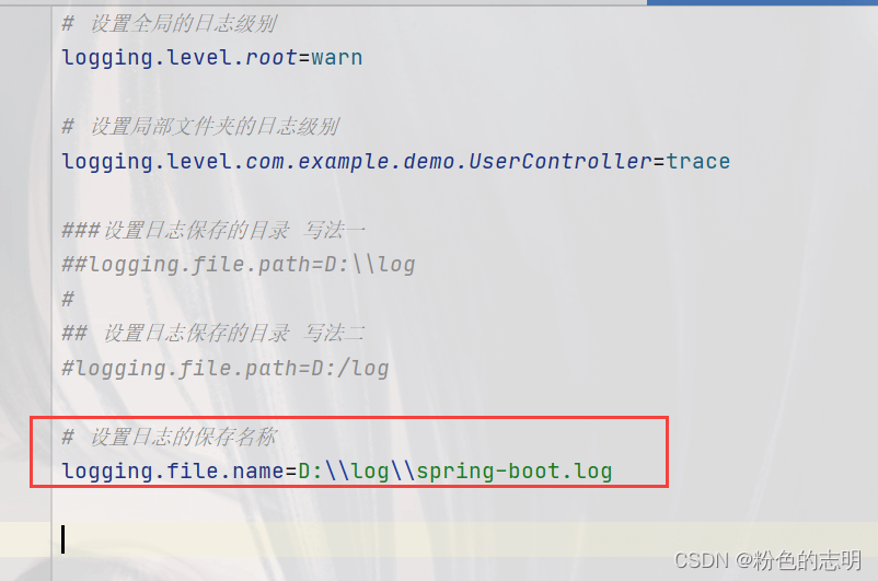 2:在配置文件中设置日志保存的名称,日志会自动进行持久化
