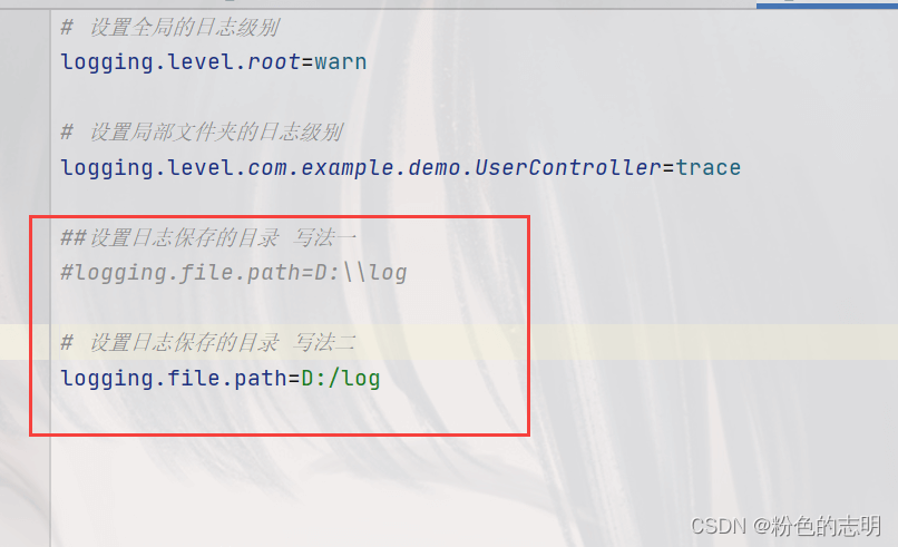 1:在配置文件中设置日志保存的路径,当设置了保存路劲之后,那么日志就会自动进行持久化