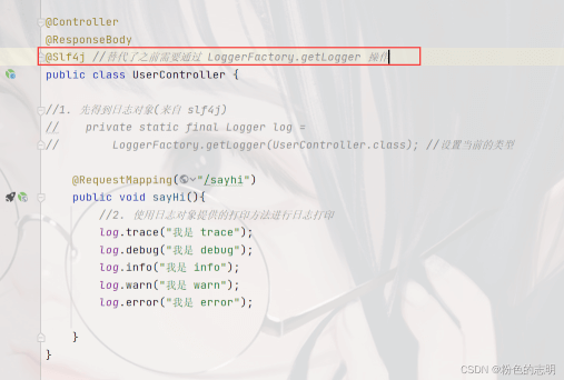 @Slf4j //替代了之前需要通过 LoggerFactory.getLogger 操作