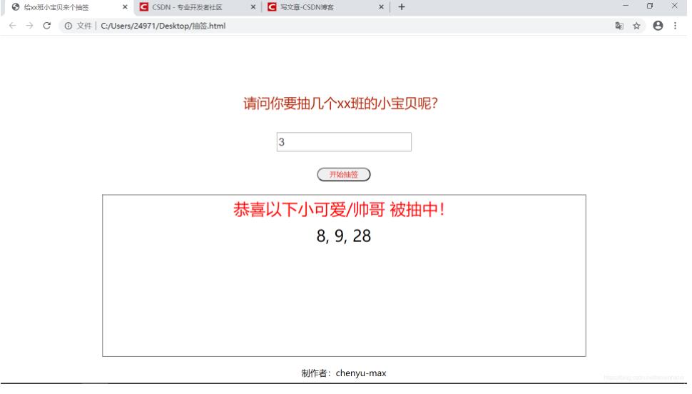 <div class="question">请问你要抽几个xx班的小宝贝呢?</div>