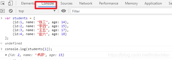 // 可以直接根据下标修改 students[0].name='张三1'; students[0].age=20; console.log(students[0]);