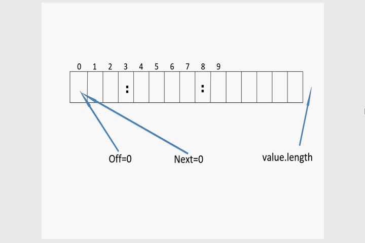 *	1)使用indexof查询off以后下一个ch的位置,并赋值给next