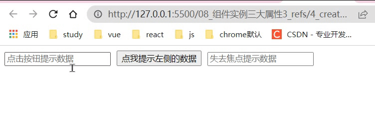 <input ref={this.myRef2} onBlur={this.showData2} type="text" placeholder="失去焦点提示数据" />