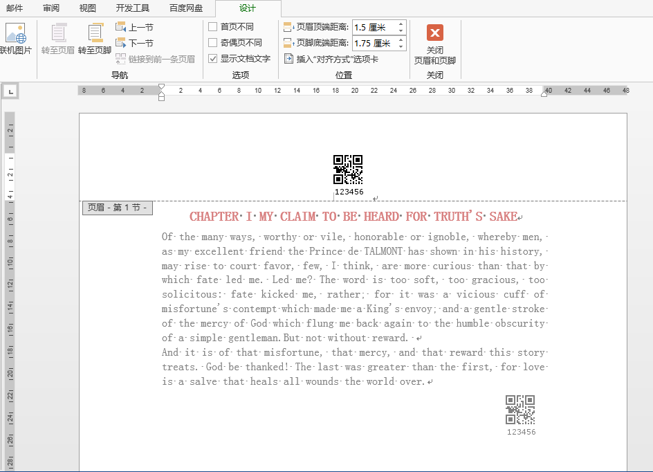 2. 添加二维码到Word(这里以添加到正文、页眉为例)