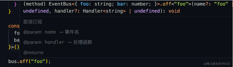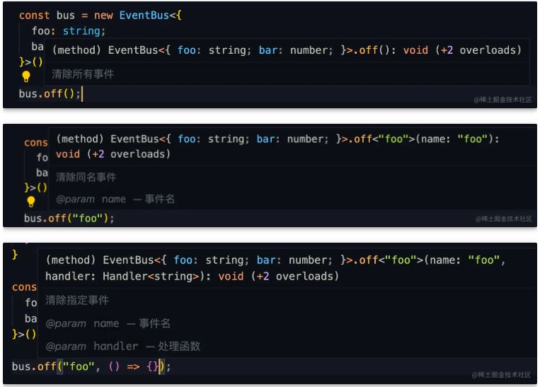 我们还可以用函数重载来改进我们的off方法,以获得更友好的提示