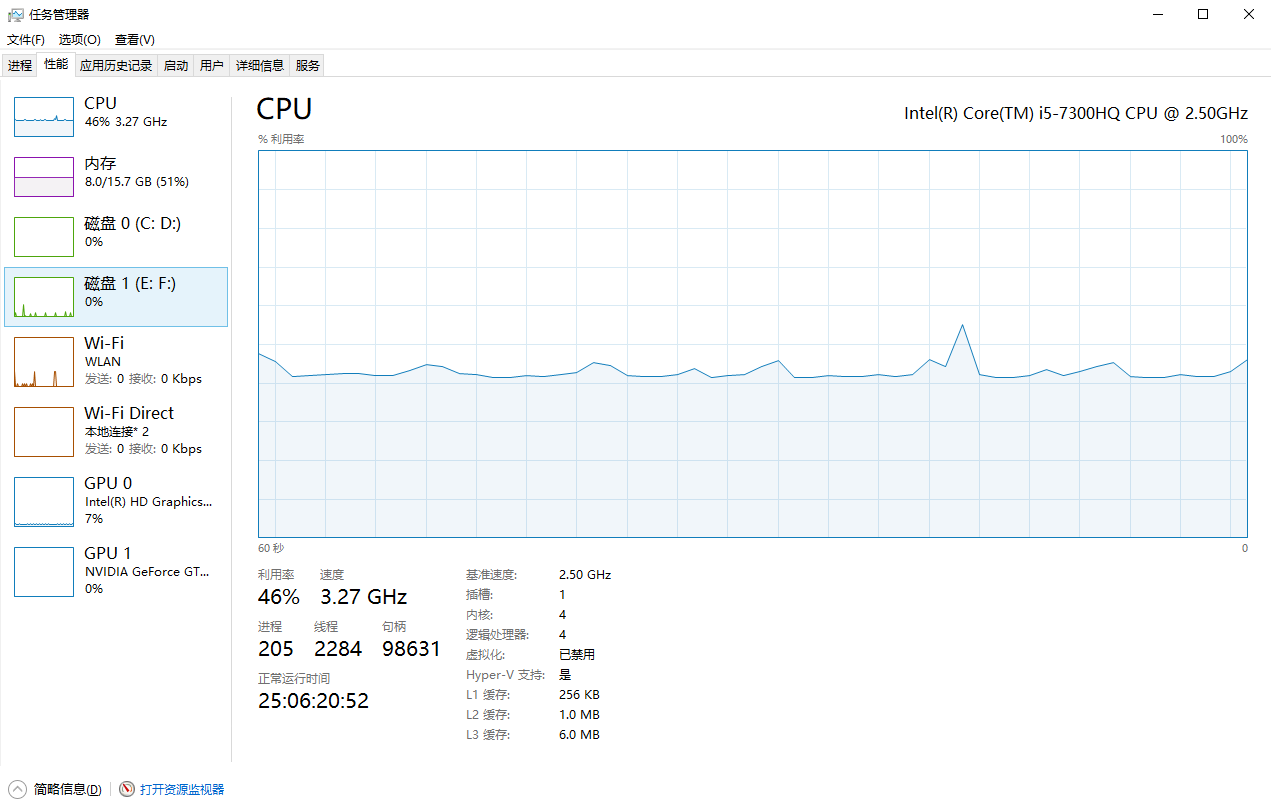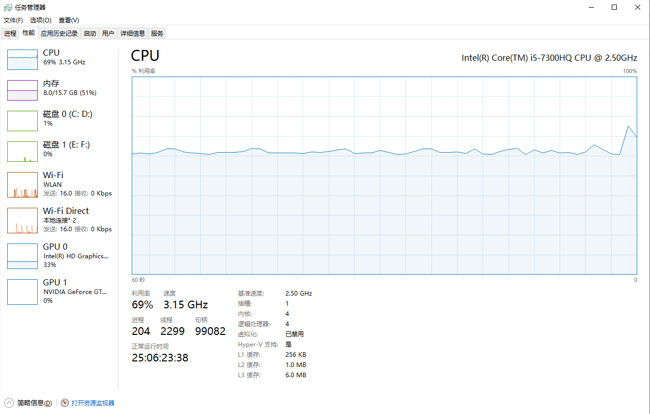 这里面可以看出,不管是多么大量的计算,使用Web Worker都不会影响主线程,但是对于未使用Web Worker影响是十分严重的,下面展示一下两种情况下电脑性能的对比