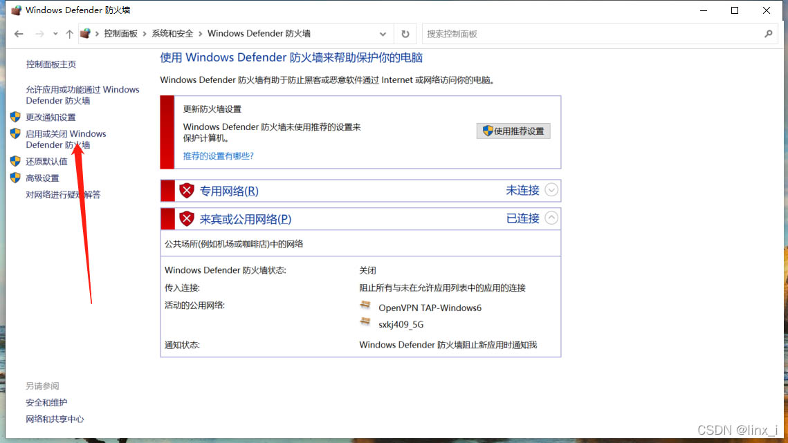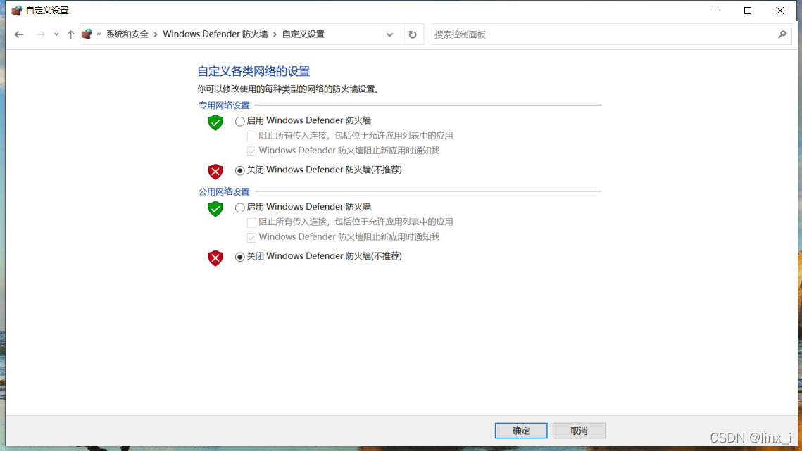 3. 在控制面板中搜索防火墙并关闭防火墙