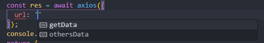 在对应文件中引入server下的axios文件输入选择url时,将会有全部接口列表提示,如下图