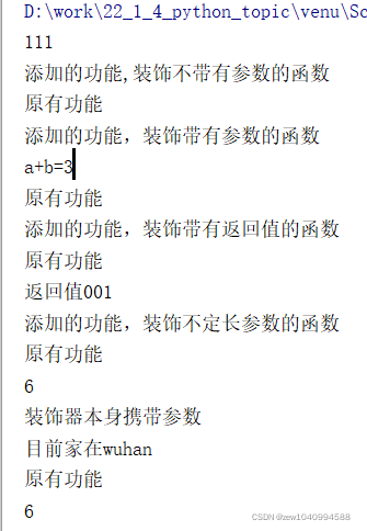 # test3(1,2,3)=decorator3(home="武汉")(test(1,2,3))()