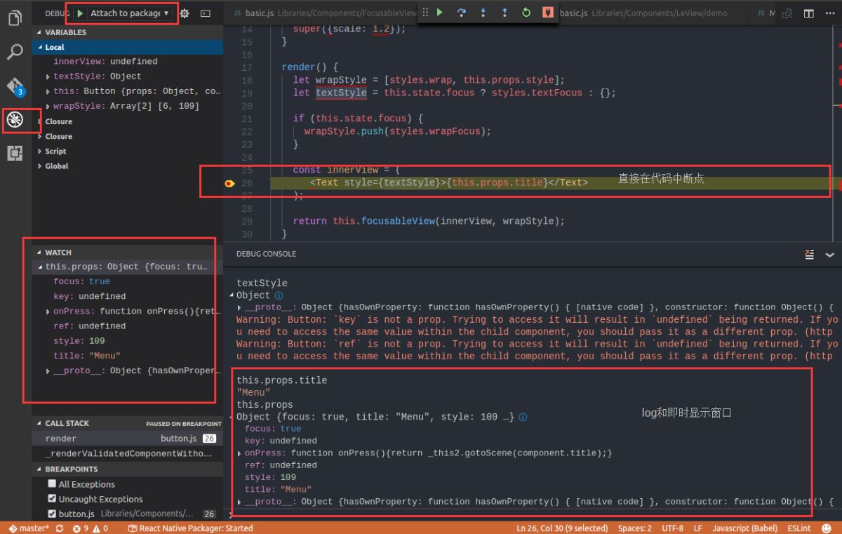 vscode安装了react-native-tools插件后,可以代替chromDevTools调试代码。