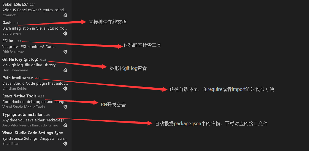 先安装eslint cli和相关插件,项目package.json中开发依赖增加(这是比较流行的RN配置):