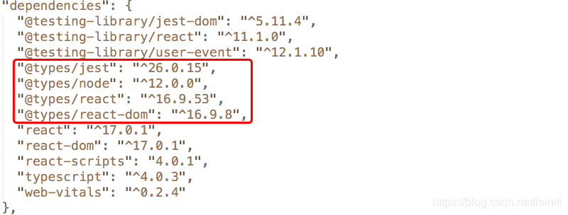 其实,依赖就是多了@types/jest,@types/node,@types/react,@types/react-dom 。