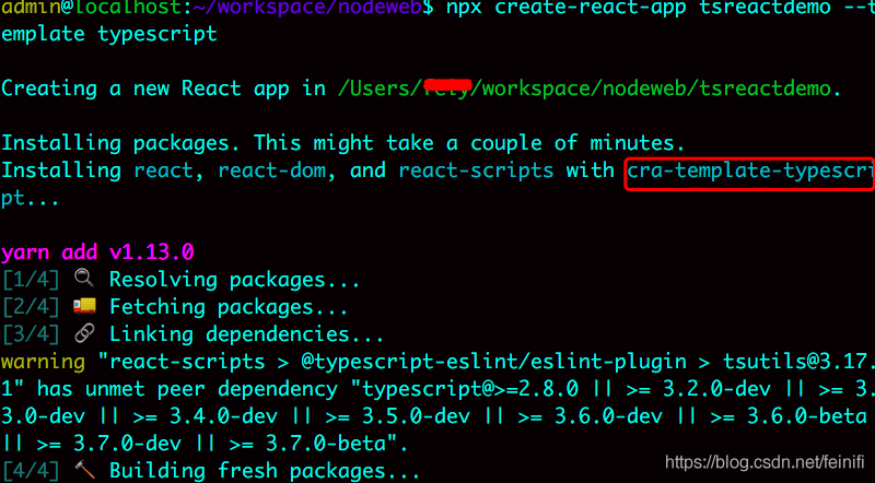 1、直接构建带有typescript的react项目,我们需要增加额外的参数,模版不能使用默认的cra-template。而是使用cra-template-typescript。