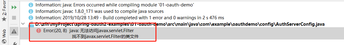 新创建一个SpringBoot项目,编译时出现了找不到javax.servlet.Filter的异常。