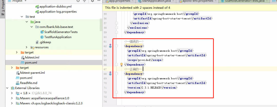 经过对比,发现 <scope>provided</scope> 是导致报错的根源;所以直接删除这个属性;添加版本号属性,重启错误得到解决。