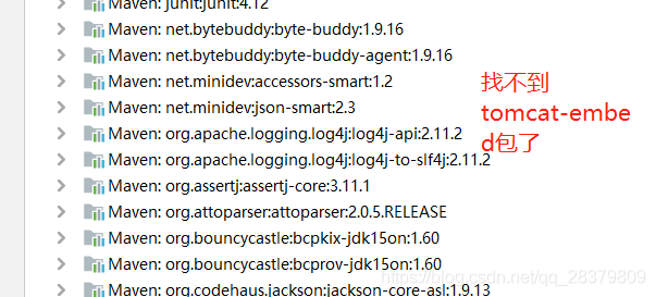 这个类位于tomcat-embed这个jar下面,这里的解决方法并不是像网上大部分所说的手动添加这个jar,因为这是由于没有添加spring-boot-starter-web依赖造成的。