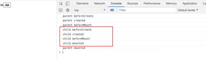 明白了组件渲染流程之后,最后我们来看一下父子组件的生命周期函数的执行过程: