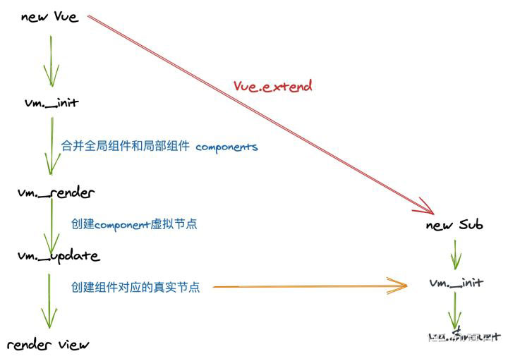- 用Vue.extend将components中的对象转换为Vue子类构造函数
