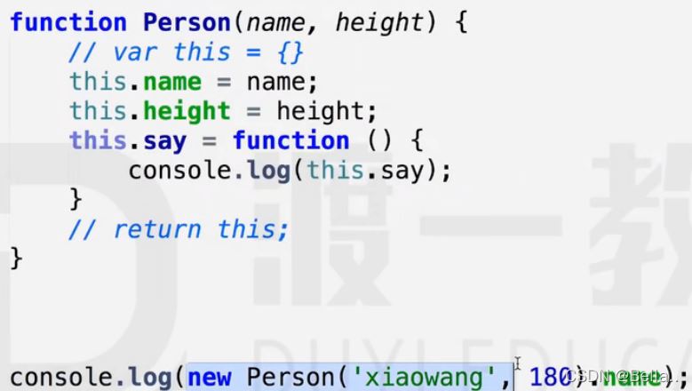 构造函数内部原理:有new就能发生下面的执行,没new就是正常函数执行