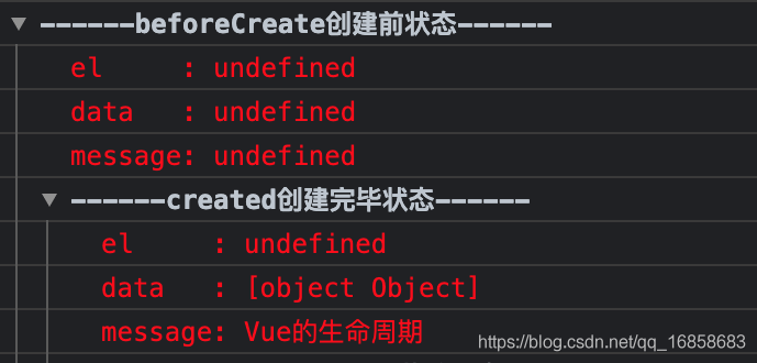 console.log("%c%s", "color:red","message: " this.message); //已被初始化